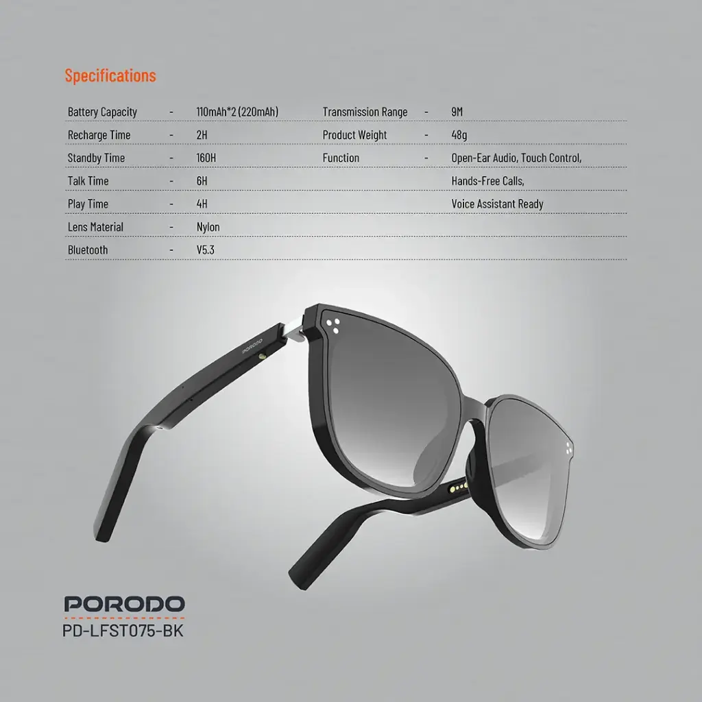 عینک آفتابی هوشمند پورودو Porodo Lifestyle، ترکیبی بی‌نظیر از مد، فناوری و سرگرمی را به زندگی روزمره شما وارد می‌کند. بهترین گزینه برای عاشقان استایل و موسیقی در یک محصول نوآورانه!