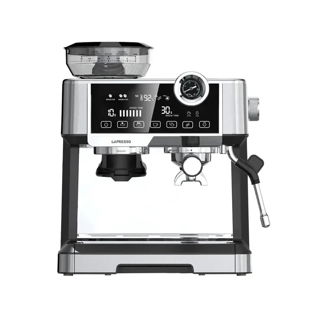 دستگاه اسپرسوساز دو بویلر لپرسو Lepresso Dual Boiler Espresso از PID کنترل دما (۹۲-۹۶ درجه سلسیوس) و فشار ۱۵ بار ایتالیایی بهره میبرد.