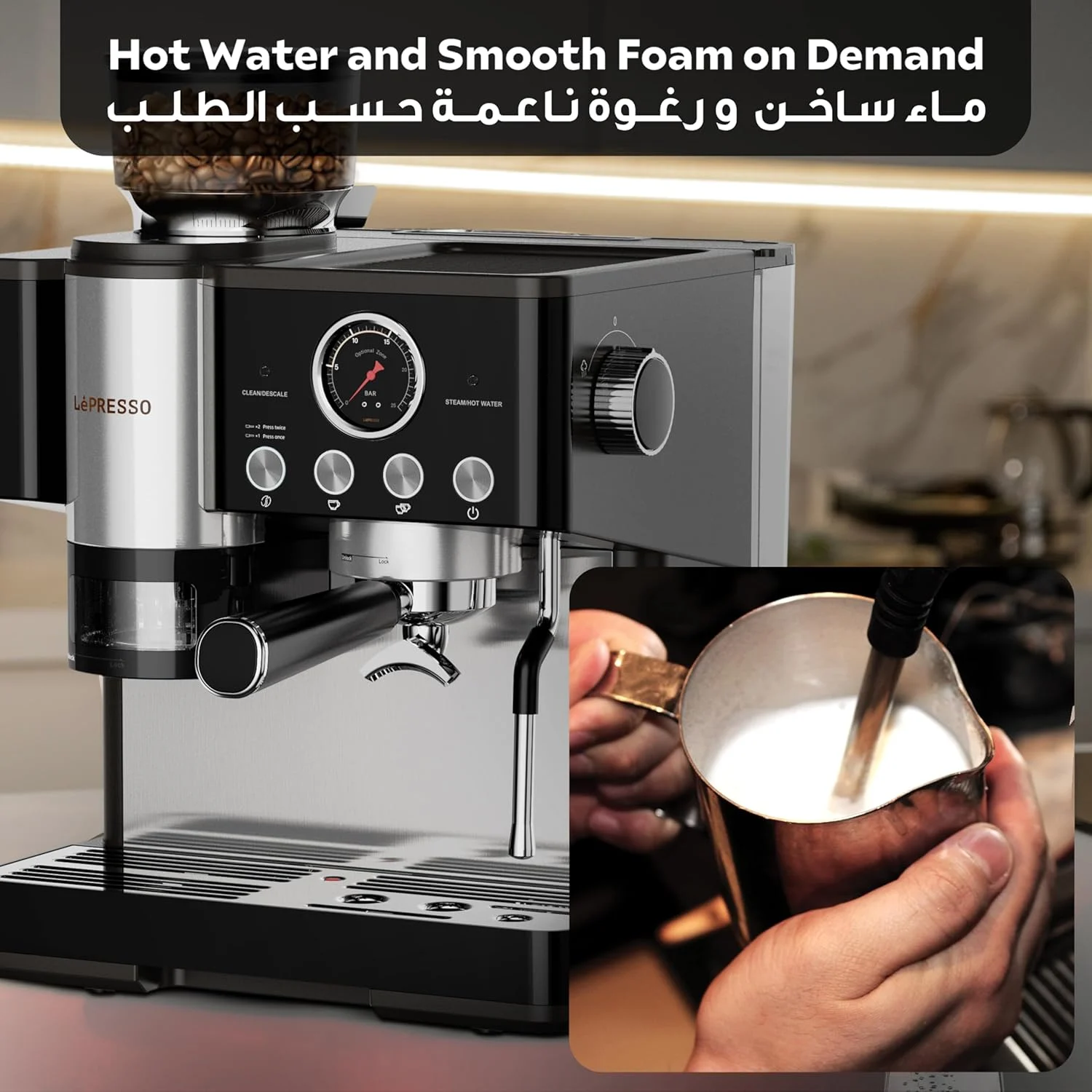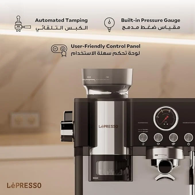 خرید دستگاه قهوه ساز نیمه اتوماتیک لپرسو LePresso MAESTRO با فشار ۱۵ بار، مخزن ۱.۸ لیتری و قابلیت فوم شیر.