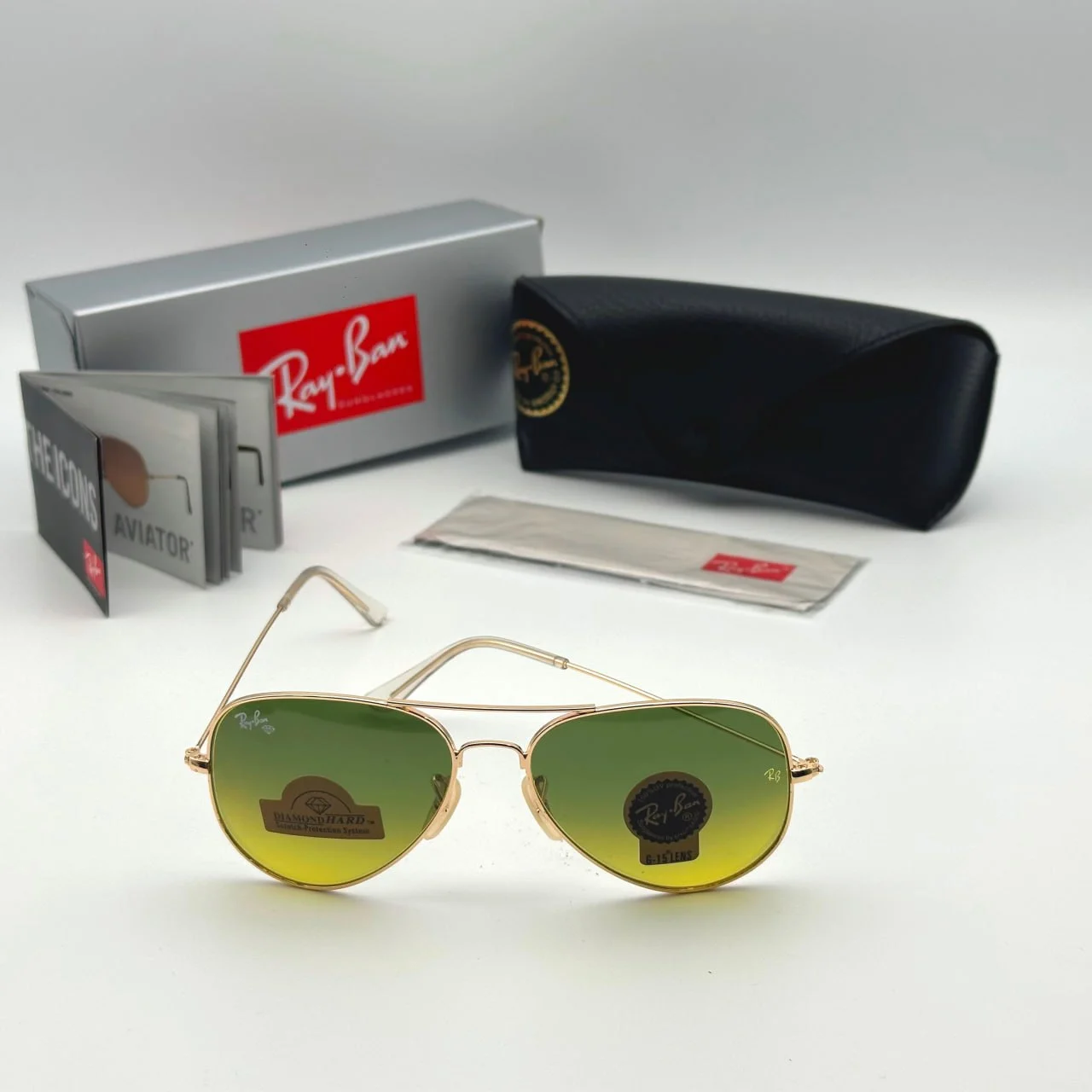 | رنگهای محبوب لنز | سبز کلاسیک (G-15)، آبی گرادیان، خاکستری، قهوهای گرادیان، آینهای (Mirrored) |