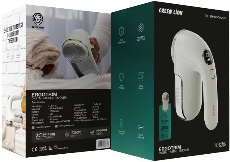 پرزگیر لباس گرین لاین مدل Ergotrim digital fabric remover با تیغه‌های استیل ضدزنگ، ۳ سرعت قابل تنظیم، مخزن ۵۰ میلی‌لیتری جمع‌آوری پرز و شارژ Type-C در ۲ ساعت (تا ۸۰ دقیقه کارکرد)، لباس‌هایتان را مانند روز اول نو کنید.